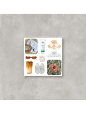 - Комплект з 9 стікерів, кожен з яких має яскравий та літній дизайн, що передає атмосферу відпочинку.