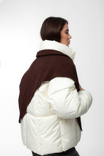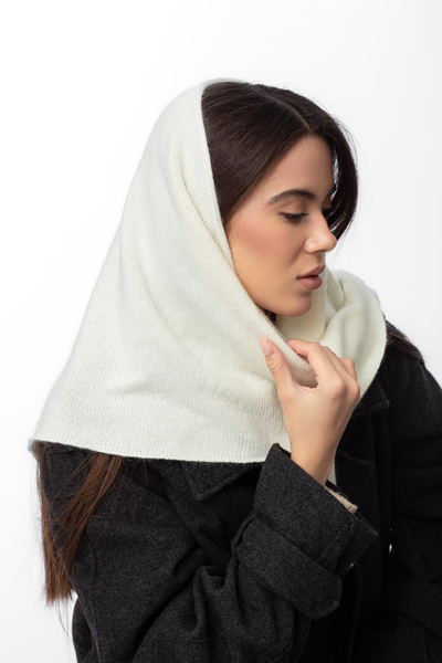Його універсальний білий колір легко комбінується з будь-яким верхнім одягом, що робить його незамінним елементом гардеробу. Бактус має об'ємну форму, яка надає йому сучасного вигляду та забезпечує додатковий захист шиї та голови від холоду. Завдяки вільному крою, бактус пасує до різних типів обличчя та розмірів, даруючи комфорт без відчуття стиснення.