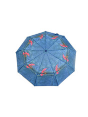 • Складана жіноча парасолька напівавтомат. Джинсовий дизайн з квітковим принтом. Купол з водонепроникної тканини, корпус і 9 спиць зі сталі, зручна пряма ручка. Чохол у комплекті. Система "антивітер" для комфортних прогулянок. Замовляй!