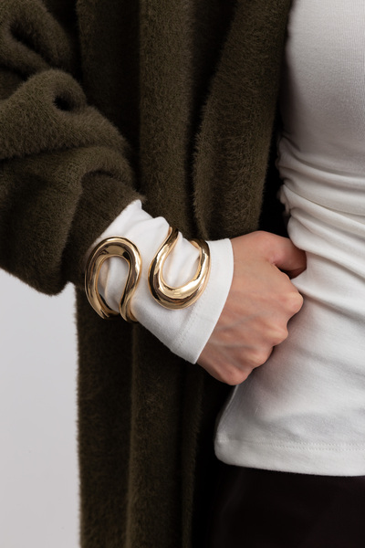 - Дизайн: Браслет має витончений та мінімалістичний дизайн, який легко поєднується з іншими прикрасами. Його гладка поверхня та м'які лінії надають йому особливого шарму.