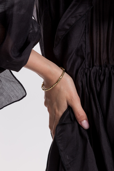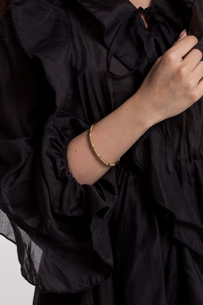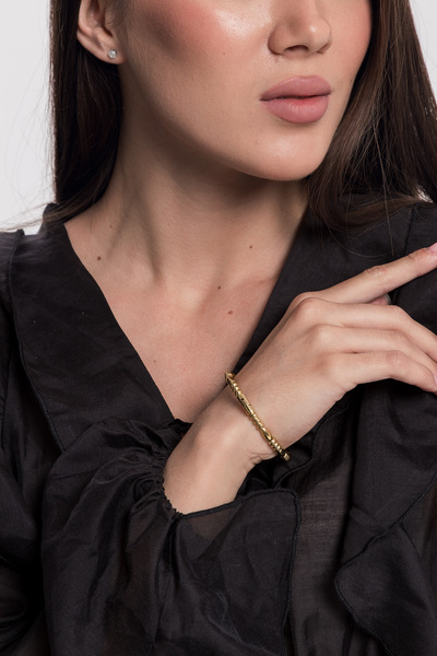 - Браслет виконаний у класичному золотистому кольорі, що робить його універсальним та легко поєднуваним з іншими прикрасами та елементами гардеробу.