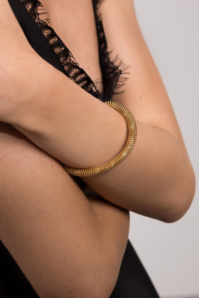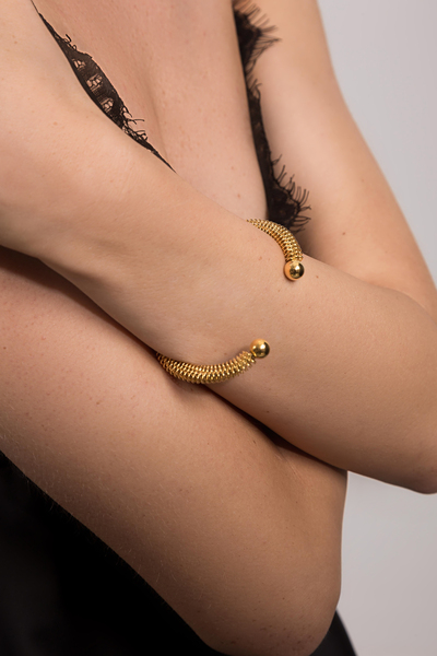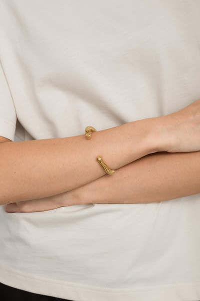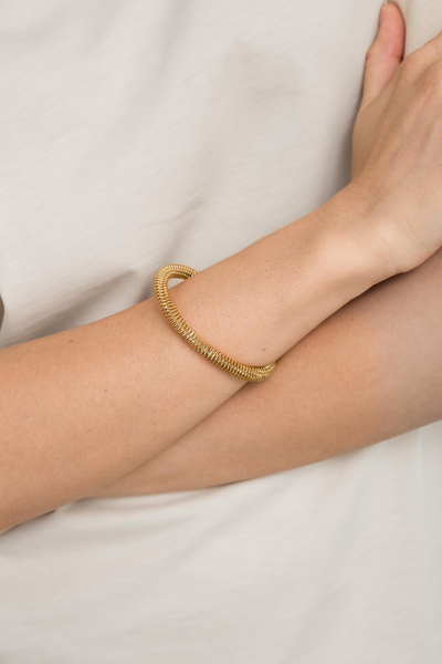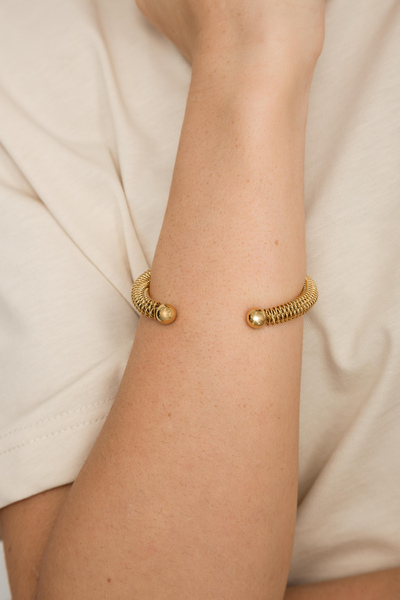- Браслет виконаний у класичному золотистому кольорі, що робить його універсальним та легко поєднуваним з іншими прикрасами та елементами гардеробу.