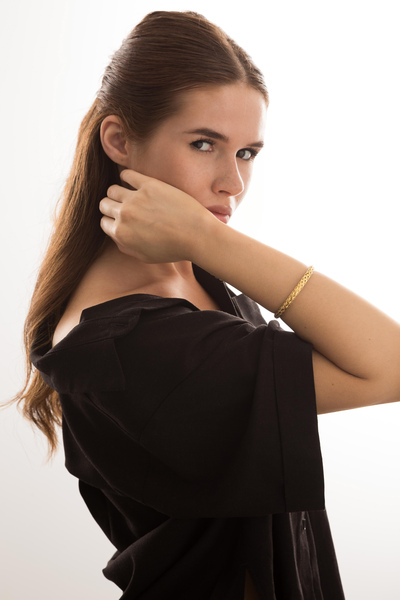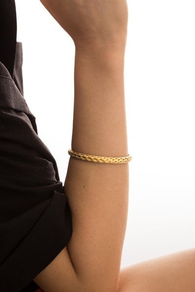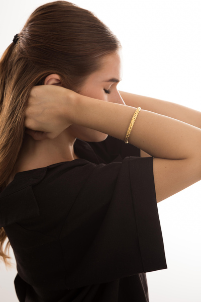 - Браслет виконаний у класичному золотистому кольорі, що робить його привабливим та легко комбінованим з іншими прикрасами.