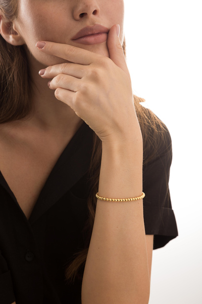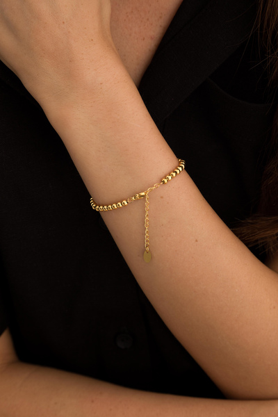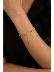 - Браслет має витончений дизайн та виконаний у золотистому кольорі, що робить його універсальним та легко поєднуємим з різними вбраннями.