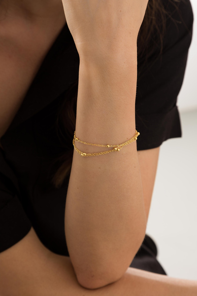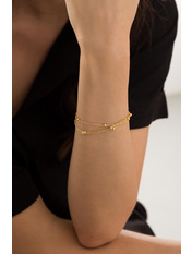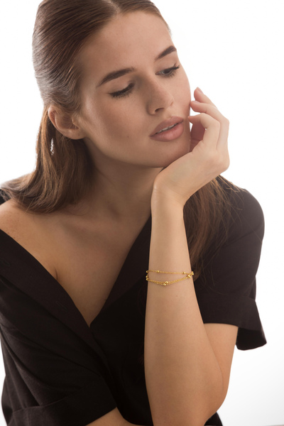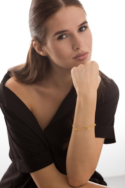 - Для збереження блиску та золотистого відтінку браслета, уникайте контакту з водою, парфумами, лосьйонами та іншими хімічними речовинами.