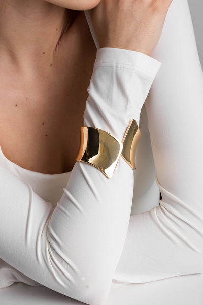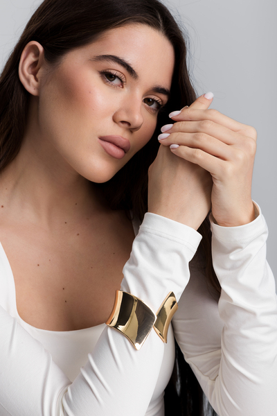 - Браслет виконаний у золотистому кольорі з класичним дизайном, що робить його універсальним для поєднання з будь-яким одягом.