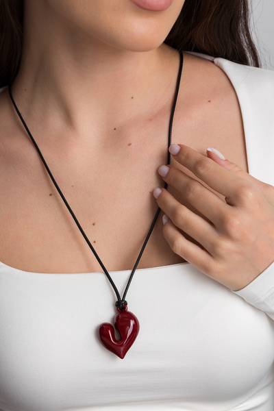 - Підвіска має стильну форму з акцентом на червоний колір, що робить її помітною та виразною.