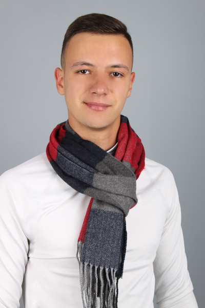 Чоловічий шарф у велику різнобарвну клітинку. Універсальний дизайн, м'яка і приємна до тіла тканина, краї прикрашені бахромою. Теплий шарф чудово доповнить однотонне пальто або куртку. Замовляй!