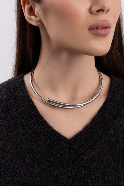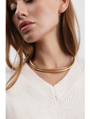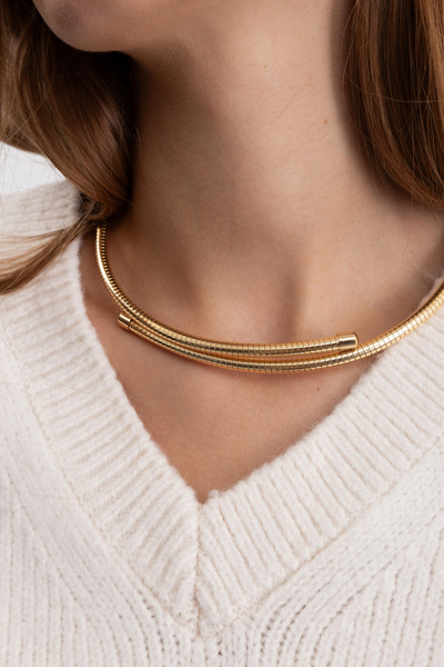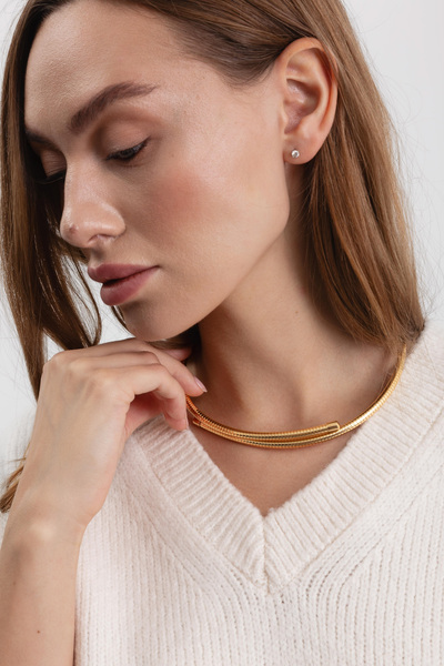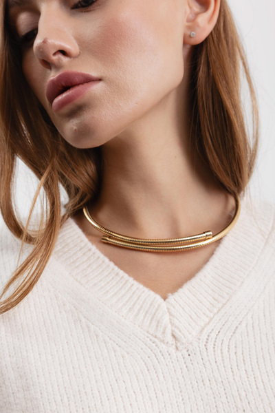 - Чокер виконаний у золотистому кольорі, що робить його універсальним і придатним до поєднання з різними відтінками одягу.