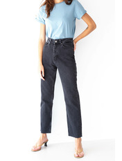Жіночі джинси з високою талією - твій must have. Прямий крій, вільні штанини, кишені спереду і ззаду. Ширінка на блискавці і металевій застібці. Замовляй!