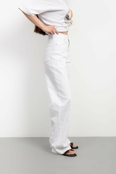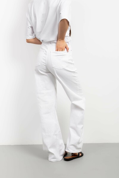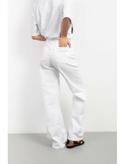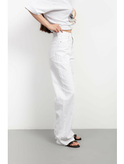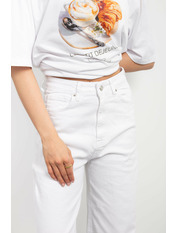 - Рекомендується прати джинси вручну або в пральній машині в делікатному режимі за температури не вище 30°C. Використовуйте м'які миючі засоби, призначені для білих тканин. Не прати занадто часто, щоб зберегти білизну та структуру тканини.