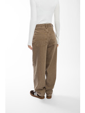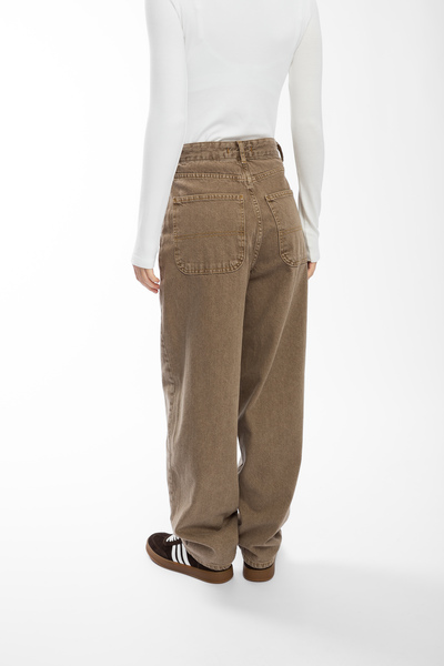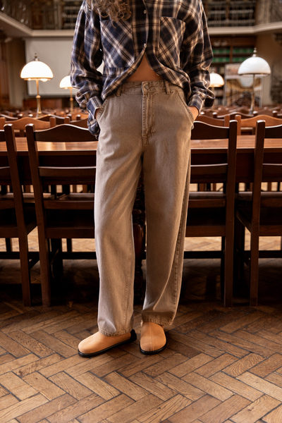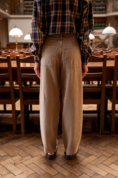 - Рекомендується прати джинси вручну або в пральній машині в делікатному режимі за температури не вище 30°C. Використовуйте м'які мийні засоби, призначені для кольорових тканин, щоб зберегти насиченість відтінку. Уникайте використання засобів, що містять відбілювачі.