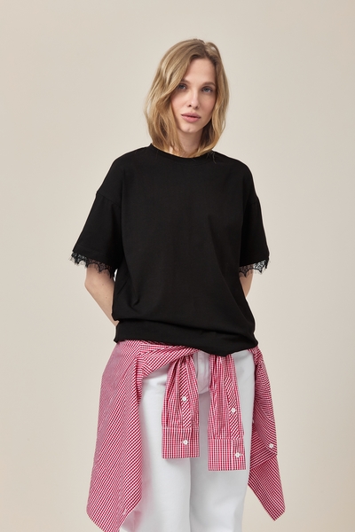 Країна виробник Україна Склад 95% Бавовна, 5% Лайкра Візерунки і принти З мереживом Сезон Весна/Літо Крій( для шаблона) Прямого крою Колекція Весна 2026 Розмір one size Обхват грудей (см) 110 Довжина рукава (см) 16 Довжина (см) 67 Обхват грудей (см) 110 Довжина рукава (см) 16 Довжина (см) 67 -