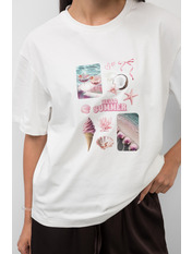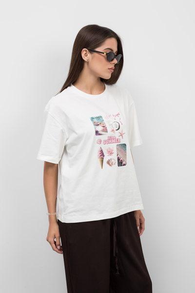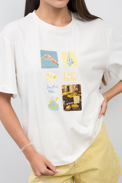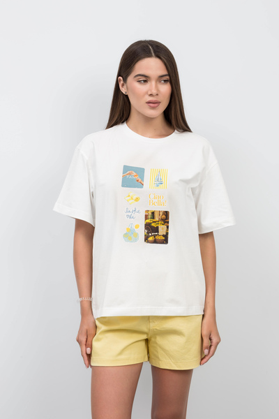 - Актуальне поєднання кольорів надає виробу універсальності: футболку легко міксувати з джинсами, шортами, спідницями або спортивними штанами.
