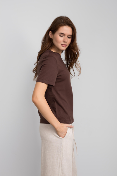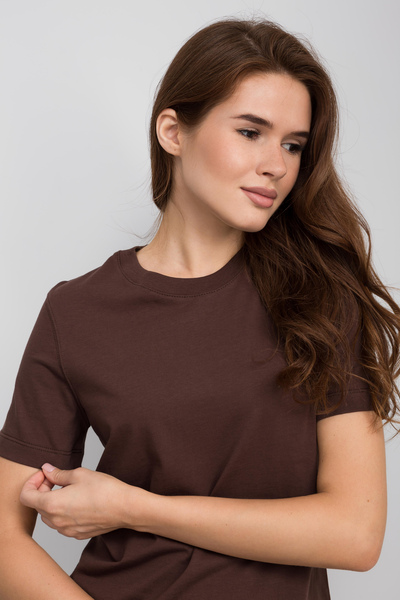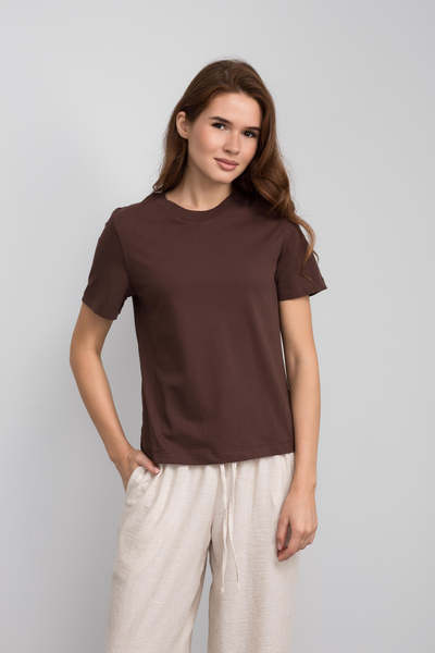 • Футболка бавовняна прямого крою FUT-F-1046 S Коричневий Коричневий S