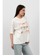Країна виробник Туреччина Стиль З принтом Колекція Літо 2025 Розмір one size Колір Кремовий Основний колір Молочний Обхват грудей (см) 120 Довжина рукава (см) 22 Довжина (см) 64 -
