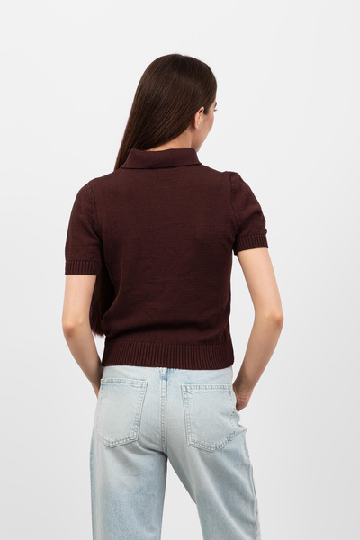 - Топ має класичний комір поло, що надає йому універсальність - його можна поєднувати як з джинсами, так і з спідницями.