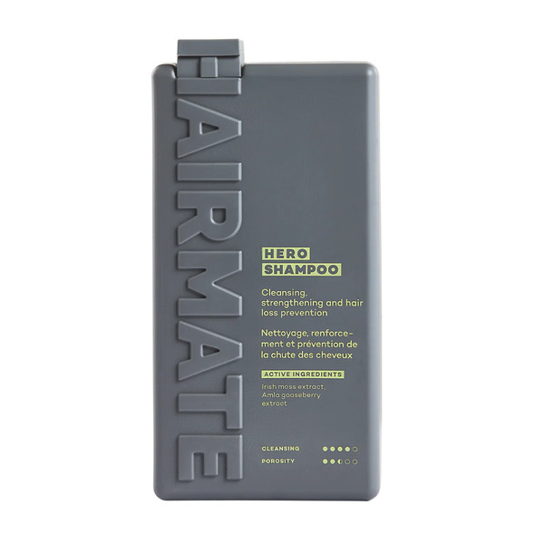 Його унікальна формула дбайливо очищає шкіру голови та волосся від забруднень, не пересушуючи його. Регулярне застосування Шампуню зміцнювального Hairmate Hero Shampoo допомагає зменшити ламкість і випадіння волосся, сприяє його зміцненню від коренів до кінчиків.
