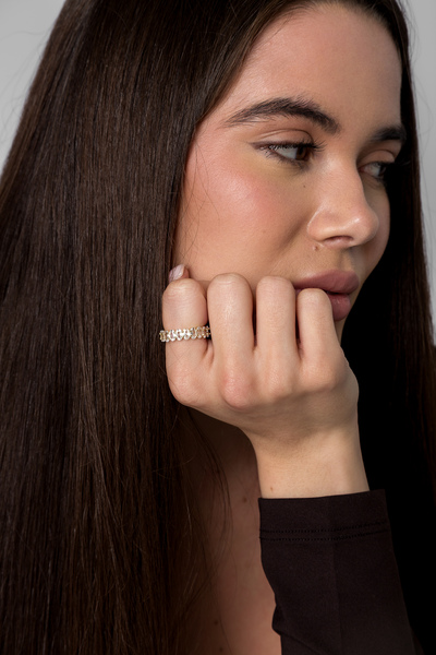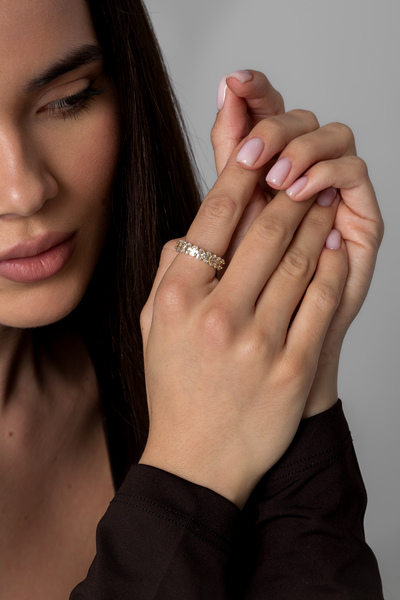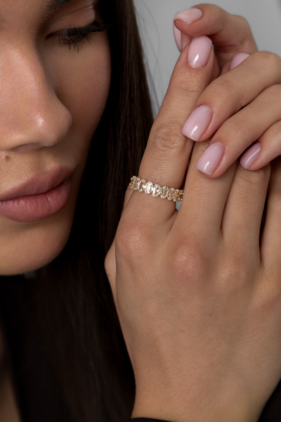 - Каблучка має класичну форму з гладкою поверхнею, що забезпечує комфортне носіння та універсальність у комбінуванні з іншими прикрасами.