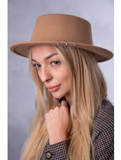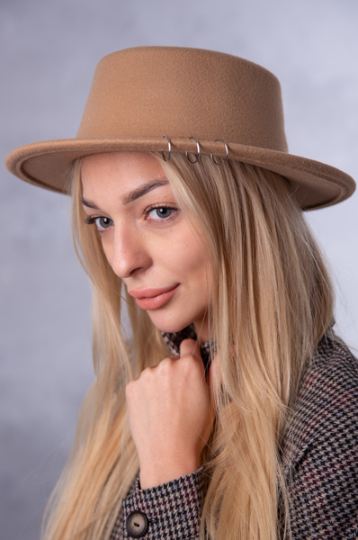Капелюх представлений у розмірі 59. Фетр приємний на дотик, не колеться. Верх капелюха плоский. На козирку є металеві декоративні кільця. Ця деталь додає виробу особливості та цікавості.Як доглядати та носити