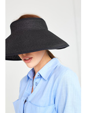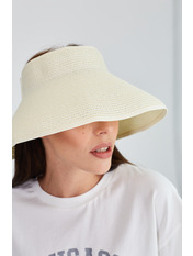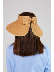 Капелюх представлений у розмірі 54-56.Капелюх має широкі опущені поля, які прекрасно захищають від сонячних променів. Родзинка даної моделі – відсутність тулії, тобто верх голови відкритий. Позаду кінці капелюха скріплені красивим мінімалістичним бантом.