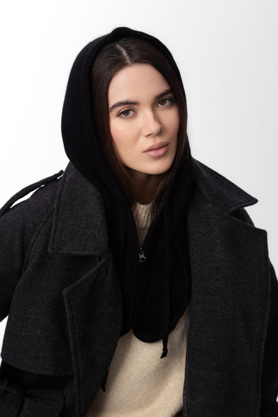 Практичний капюшон замінює шарф та шапку, повністю захищаючи голову, шию та частину грудей від несприятливих погодних умов, що робить його незамінним у демісезонний та зимовий періоди.