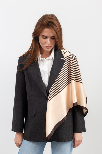 Стильна і універсальна хустка, яку можна використовувати як аксесуар до будь-якого образу. Ця атласна хустка має гладку, блискучу поверхню та є легкою і приємною на дотик. Її ніжний бежевий колір додає елегантності та вишуканості, роблячи її ідеальним доповненням для повсякденного або святкового вбрання.