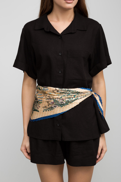- Як аксесуар: Зав'яжіть хустку на шиї, голові, зап'ясті або прикрасьте нею ручку сумки, додаючи нотку елегантності та кольору вашому вбранню.