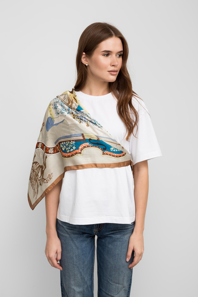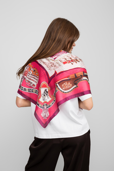 - Як аксесуар: Хустку можна елегантно зав'язати на шиї, голові, зап'ясті або прикрасити нею ручку сумки, додавши образу вишуканості та оригінальності. Вона чудово поєднується як з діловим, так і з повсякденним стилем.