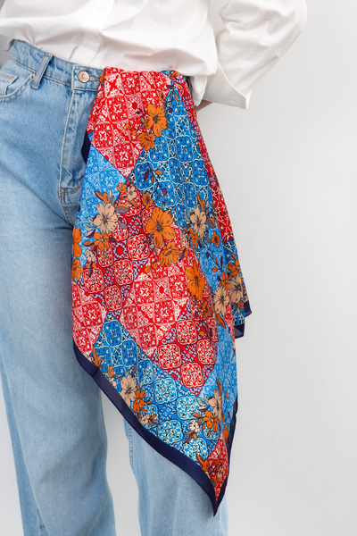 - Як аксесуар для голови: Хустку можна пов'язати на голову як бандану, обруч або тюрбан, додаючи шарму та захист від сонця.
