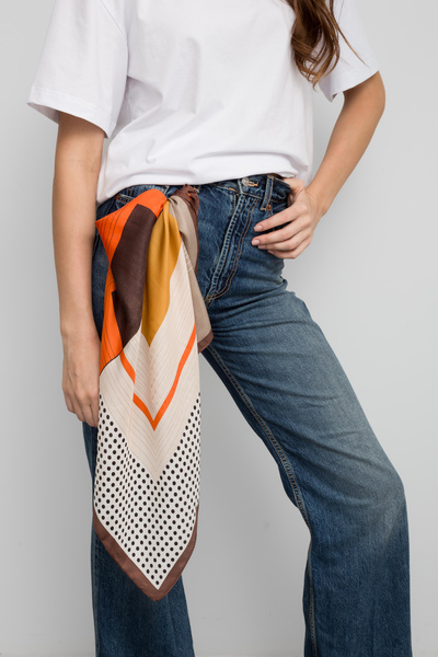 - Як елегантний аксесуар: Хустку можна зав'язати навколо шиї, як стрічку для волосся, або прив'язати до ручки сумки, щоб надати вишуканості вашому повсякденному або вечірньому образу.