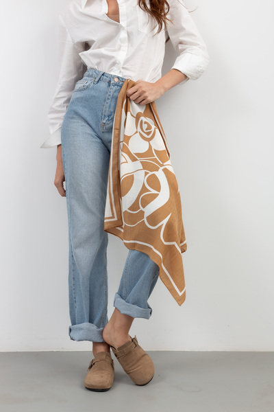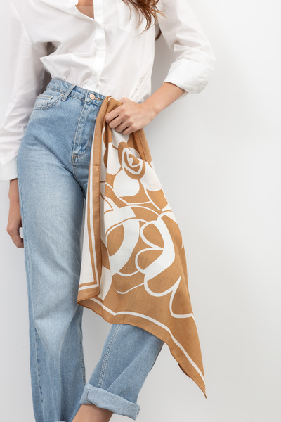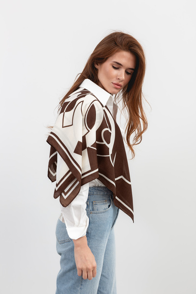 Стильна і універсальна хустинка, яку можна використовувати як аксесуар до будь-якого образу. Коричневий колір відмінно пасує до ділового та повсякденного стилю, а також гармонійно поєднується з теплими відтінками. Хустинка має гладку, блискучу поверхню та є легкою і приємною на дотик.