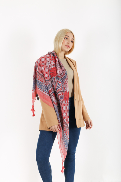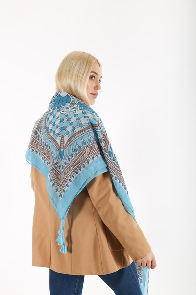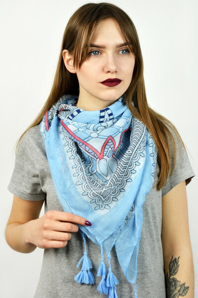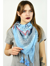 • Жіноча хустка з весняної колекції. Оригінальний дизайн з візерунками, акуратні краї з китицями. М'який і приємний до тіла матеріал, який чудово зберігає тепло. Об'ємна хустка, яку можна накинути на голову або на плечі, використовувати як снуд. Замовляй!