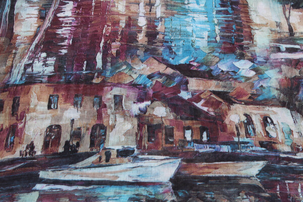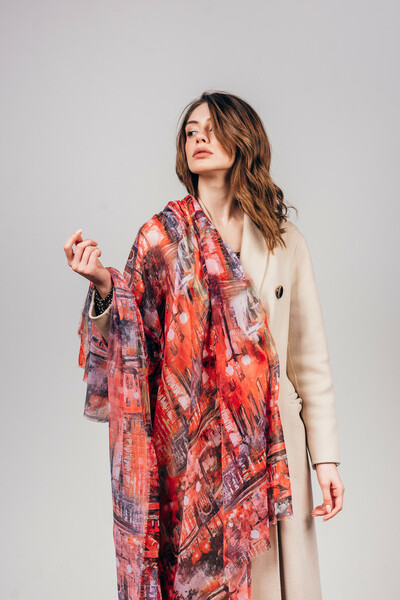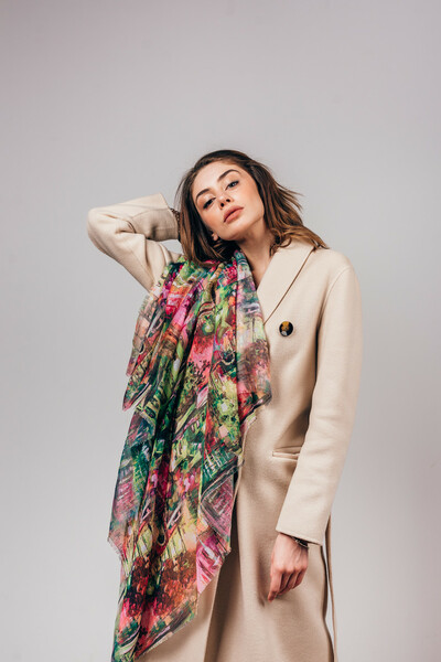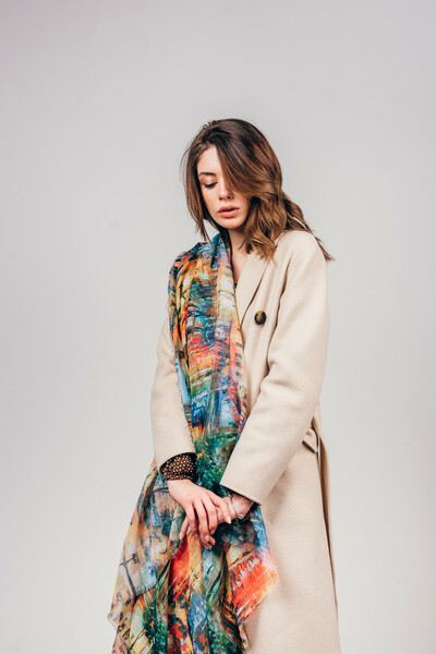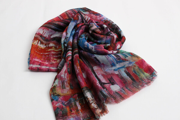 Яскрава хустка не залишить тебе байдужою! Поєднання різних колірних рішень, абстрактний принт, необроблені краї. Об'ємний аксесуар, який можна носити як хустку або снуд, накидати на плечі як шаль. Замовляй!