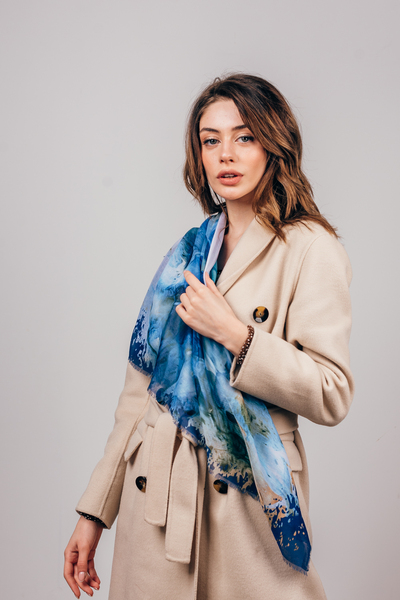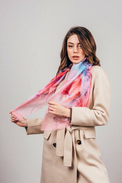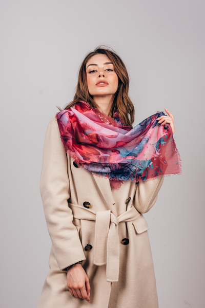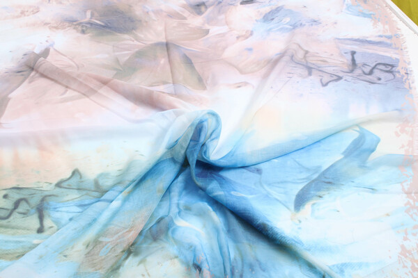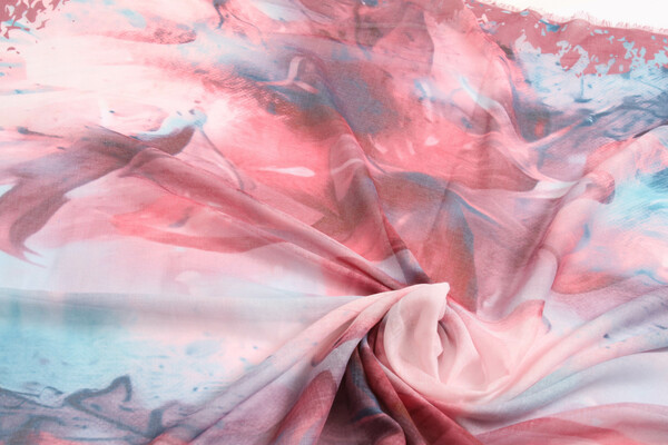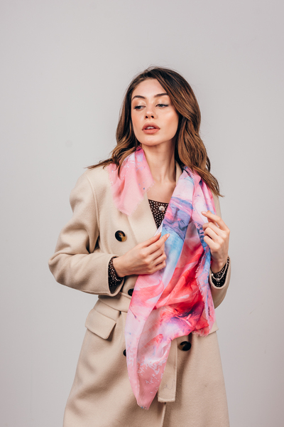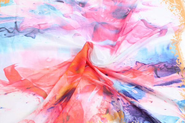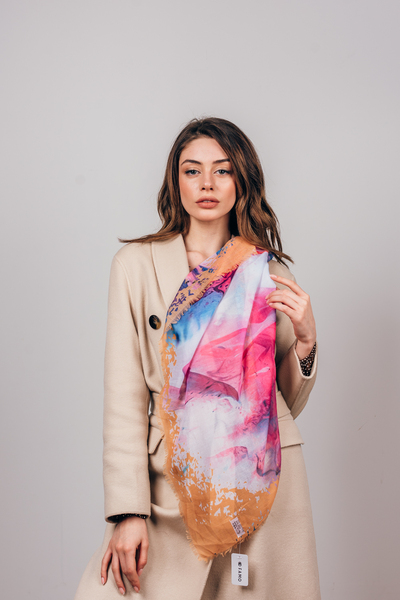 Легка хустка сезону весна-осінь. Яскрава колірна гама, абстрактний принт, необроблені кромки. М'який і приємний матеріал, у складі шовк. Цей аксесуар можна накинути на плечі, обмотати навколо шиї або підкреслити його стильним поясом. Обирай колір і замовляй!