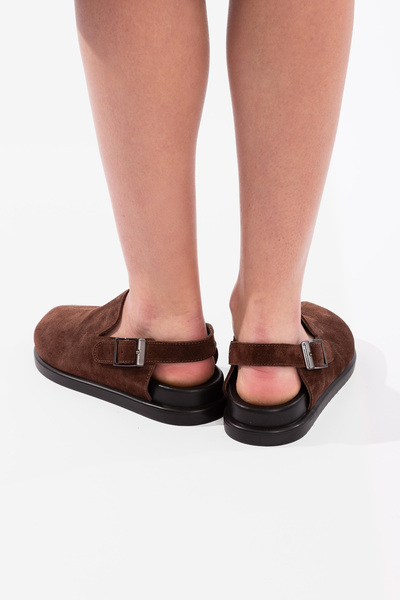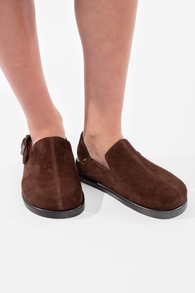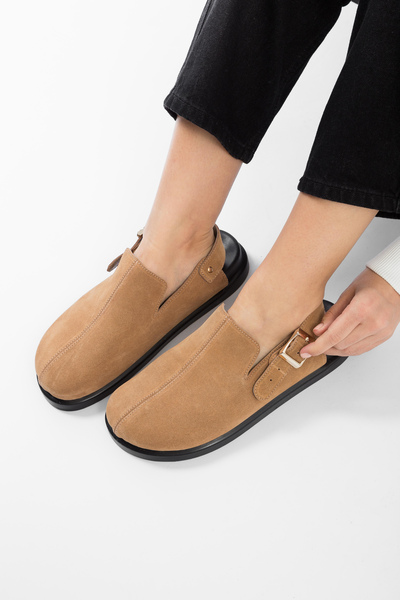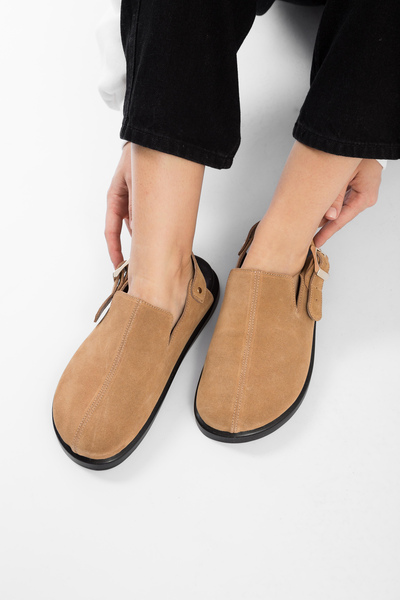 • Виготовлені зі 100% натуральної замші, ці клоги забезпечують м'якість і комфорт для ніг. Замша виглядає стильно та додає взуттю преміального вигляду, водночас пропускаючи повітря для комфорту в теплі дні.