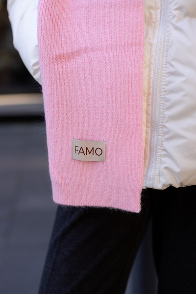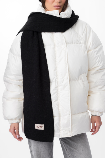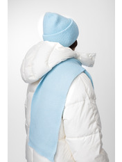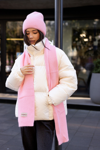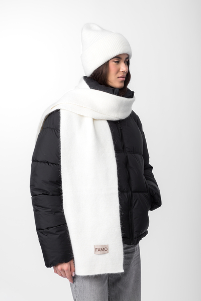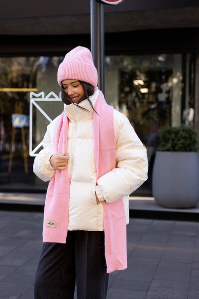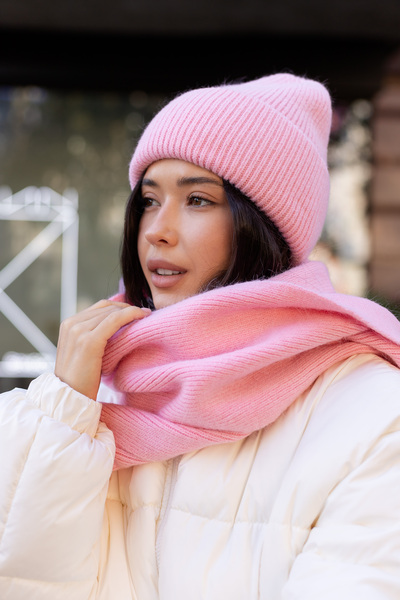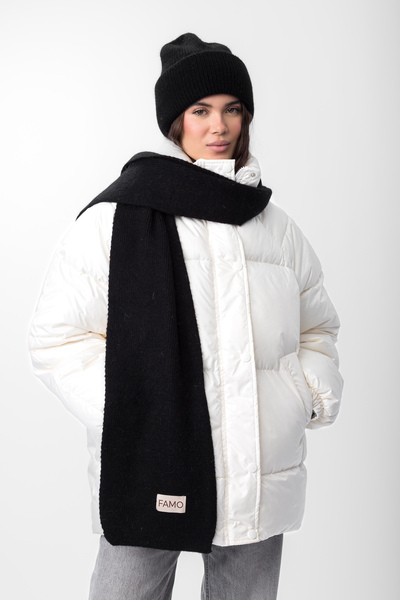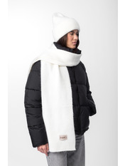 Шарф, зі свого боку, виконаний у тому ж стилі, що й шапка. Його оптимальна довжина дозволяє носити його різними способами — вільно драпірувати навколо шиї або щільно обмотувати для максимального тепла. Ребриста в'язка додає шарфу текстури та привабливості.