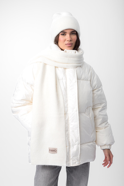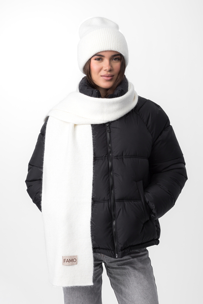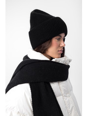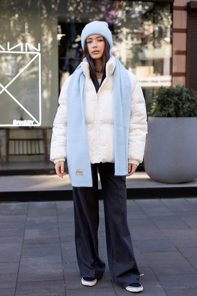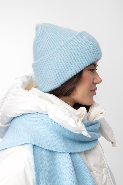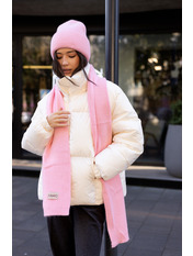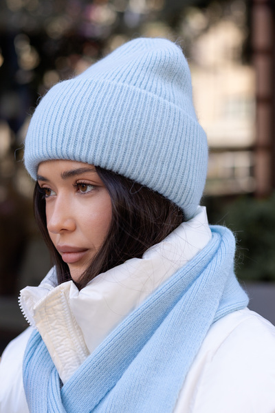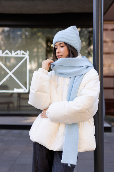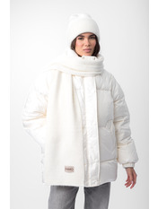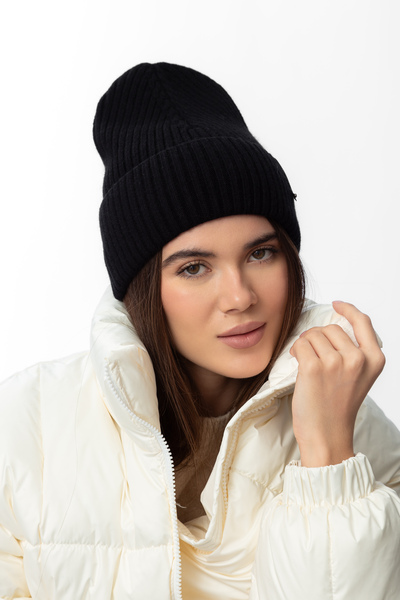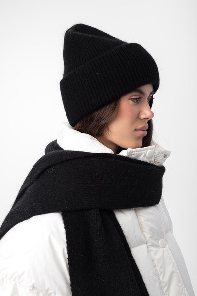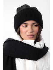 Шапка, що входить до комплекту, має подвійний відворот, який забезпечує додатковий захист від холоду та вітру, а також додає об'єму та модного вигляду. Завдяки еластичній в'язці, шапка м'яко облягає голову, не тисне та зберігає свою форму протягом тривалого часу.