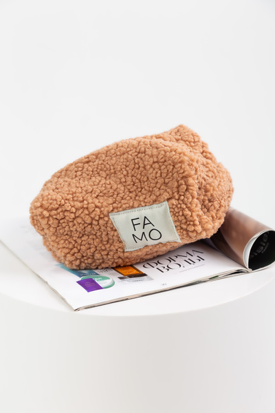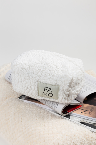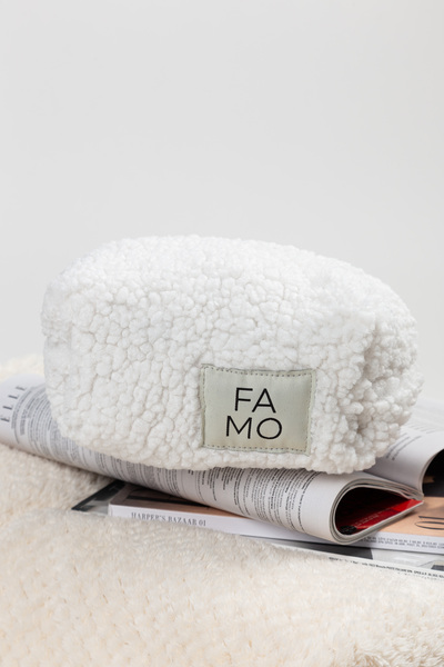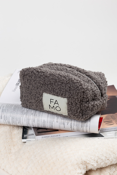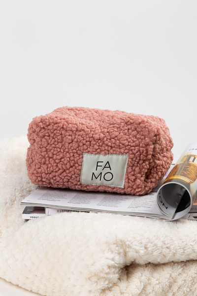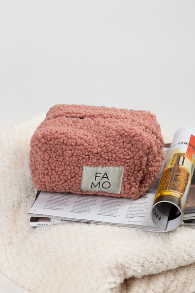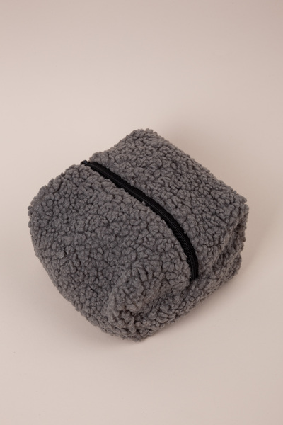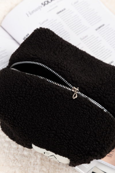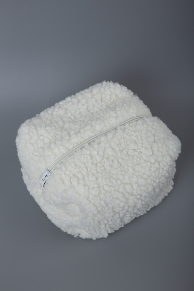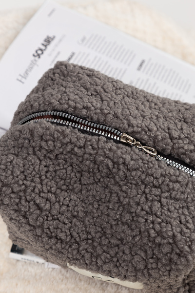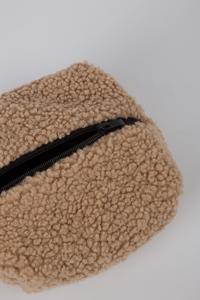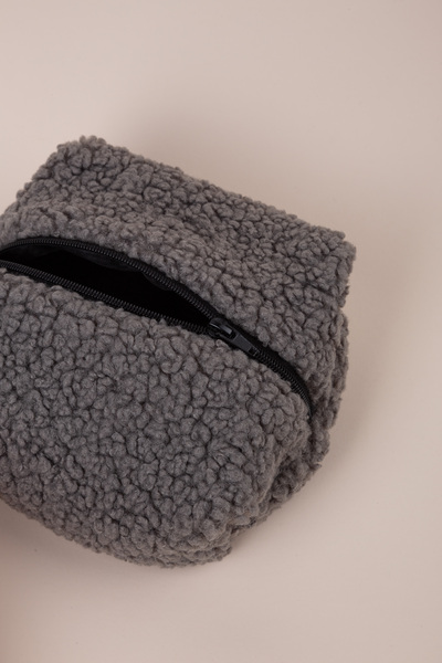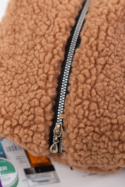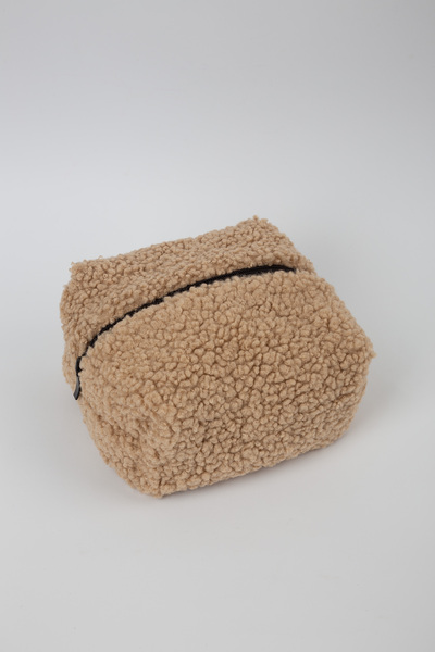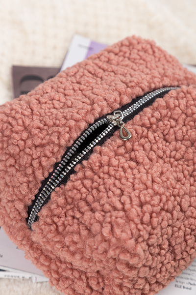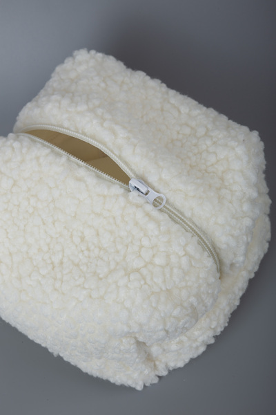 Косметичка виконана у стилі тедді – м'яка, об'ємна та нагадує шерсть овечки. Застібається вона за допомогою блискавки. Представлений виріб у ніжних приємних відтінках.
