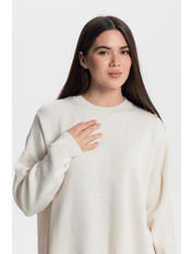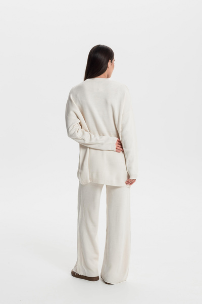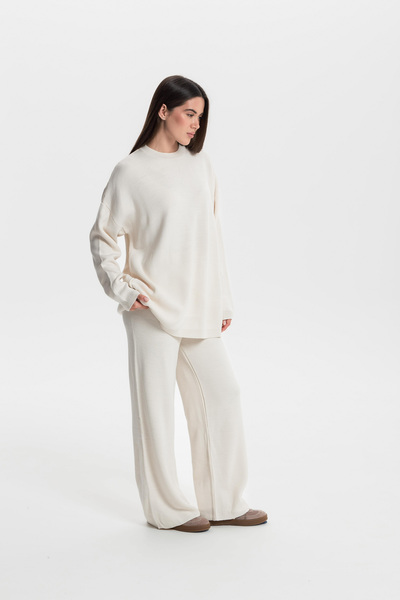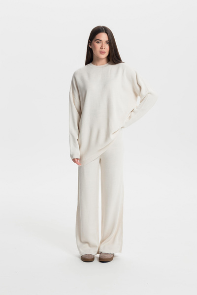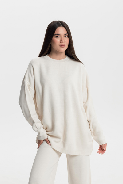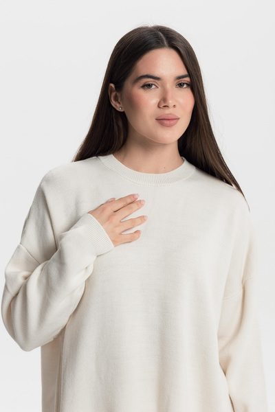 Светр прямого крою KOF-251005 молочного кольору в універсальному розмірі One Size представляє собою ідеальне поєднання затишку та стилю. Виготовлений з якісних матеріалів, цей светр забезпечує приємні тактильні відчуття та комфорт під час носіння. Його класичний крій та нейтральний молочний відтінок дозволяють легко інтегрувати його в будь-який гардероб, роблячи його незамінним елементом для повсякденних образів.