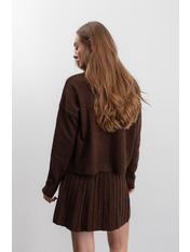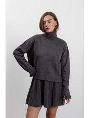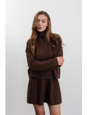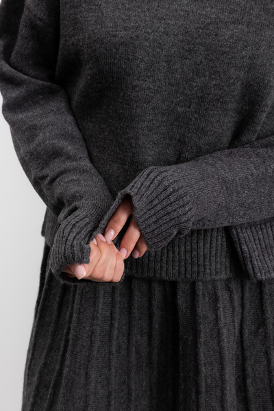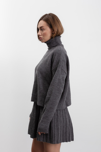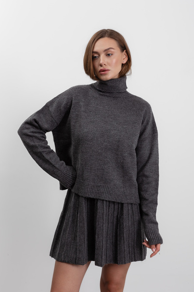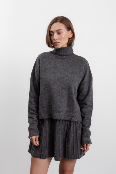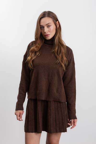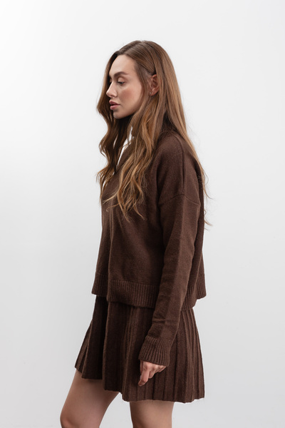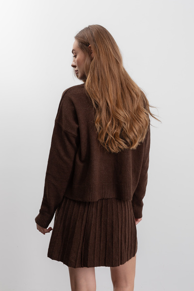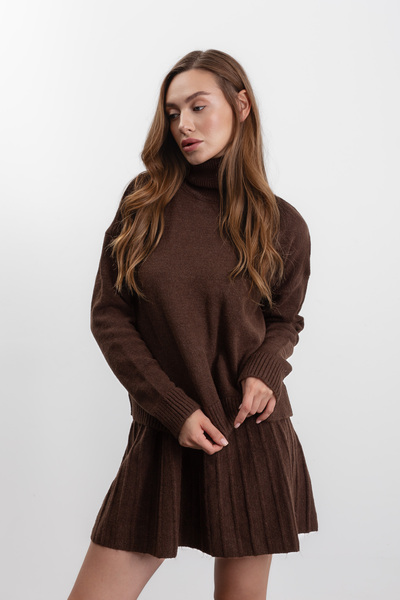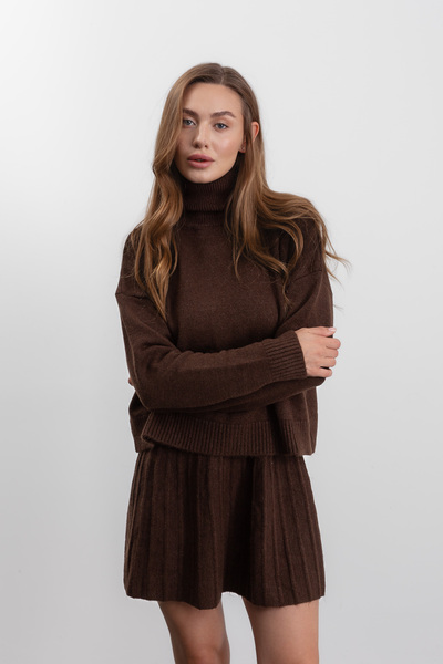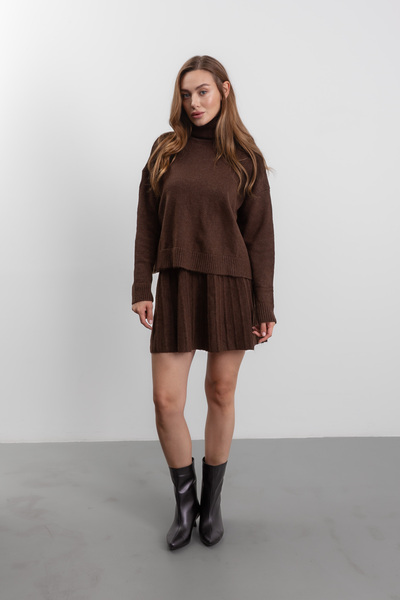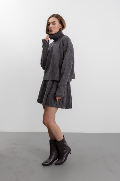 Спідниця та светр доповнюють один одного, створюючи гармонійний і жіночний образ.
