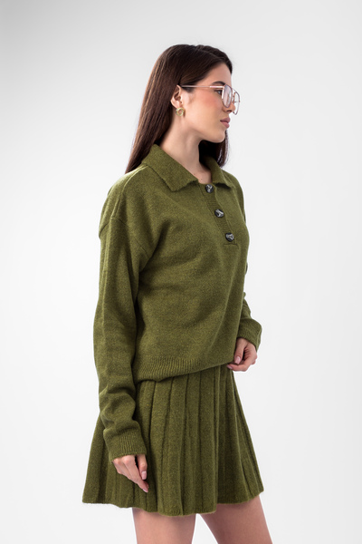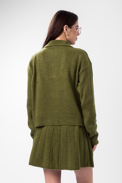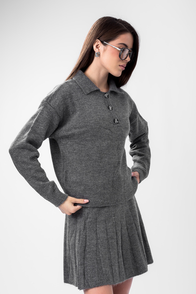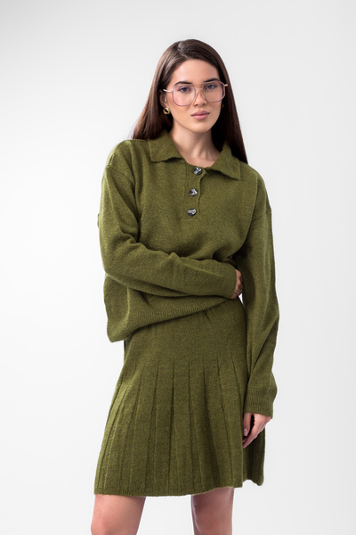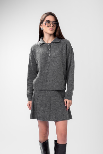 Країна виробник Туреччина Склад 37% Поліестер, 33% Акріл, 30% Бавовна Бренд Famo Вид товару Костюм Вид низу Спідниця Вид верху Светр Тип тканини Трикотажний Категорія товару Одяг Сезон Весна/Осінь Колекція Осінь 2025 Колір Оливковий Основний колір Зелений Розмір one size Колір Антрацит Основний колір Сірий Розмір one size -