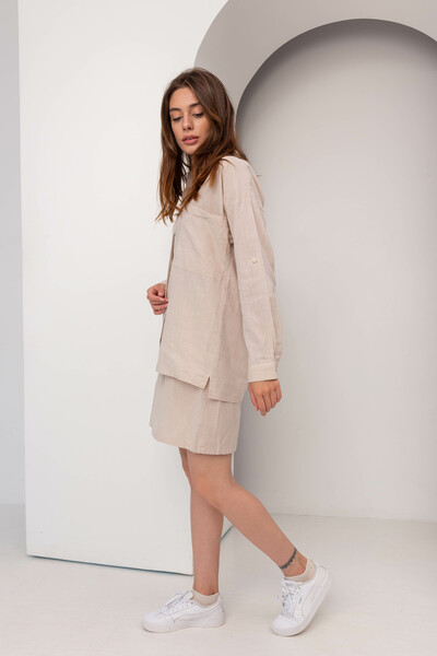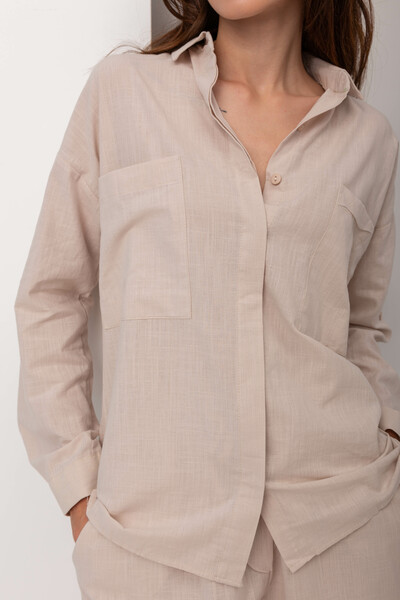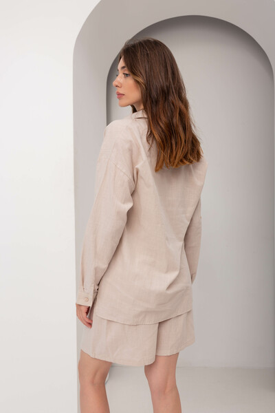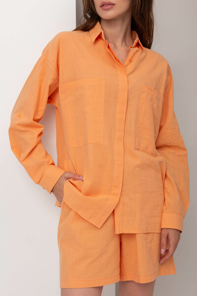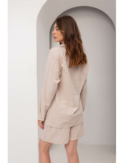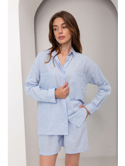 Сорочка з довгими рукавами, на гудзиках. Із двума карманами спереду. Шорти – вільні, на резинці. Якісна тканина не вимагає спеціального догляду, легка у догляді і не вигорає на сонці. Ідеальний варіант на літній сезон.