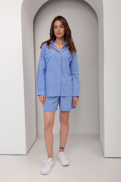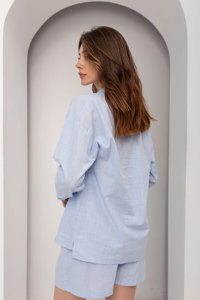• Лляний костюм KT-0413 Блакитний. Блакитний M