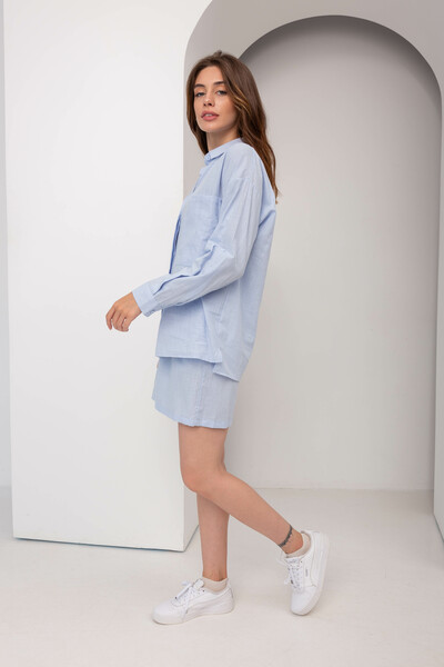 • Лляний костюм KT-0413 Блакитний. Блакитний S