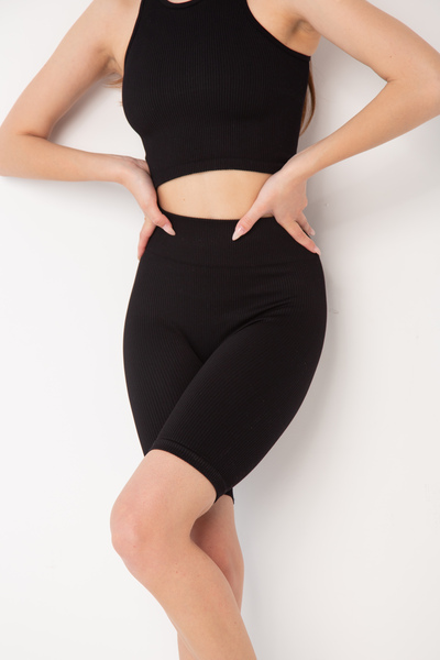 Повсякденний комплект із шортів і топу. Висока еластичність. Якісна тканина не вимагає спеціального догляду, легка у догляді, не вигорає на сонці. Ідеальний варіант для занять спортом та прогулянки містом.