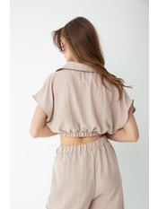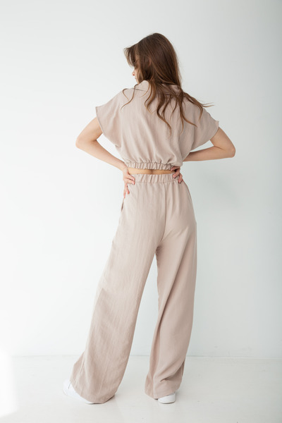 Неймовірно стильний літній костюм. Зручний та не обмежує свободу руху. Штани на резинці із двома карманами по бокам.