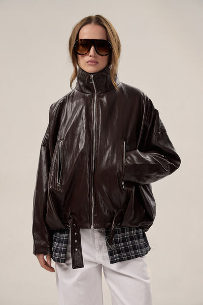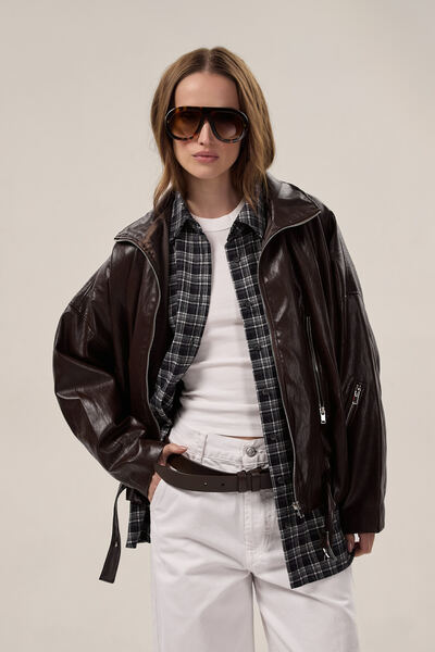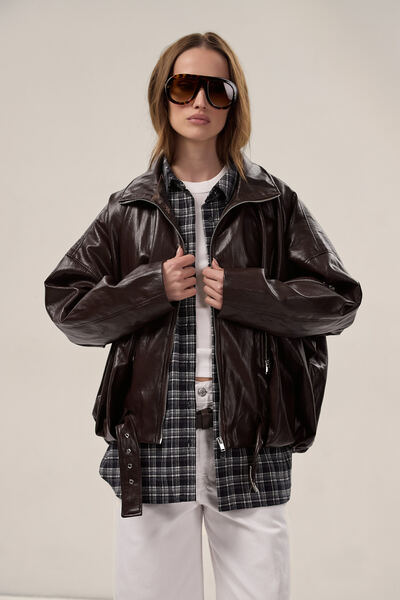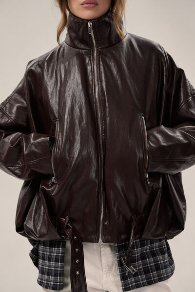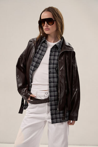 Країна виробник Україна Склад 100% Поліестер Тип застібки Блискавка Тип тканини Еко-шкіра Тип вороту Стійка Сезон Весна/Осінь Колекція Весна 2026 Розмір M/L Колір Шоколадний Розмір XS/S Колір Шоколадний -
