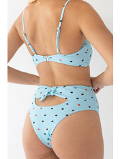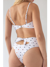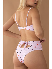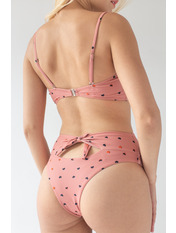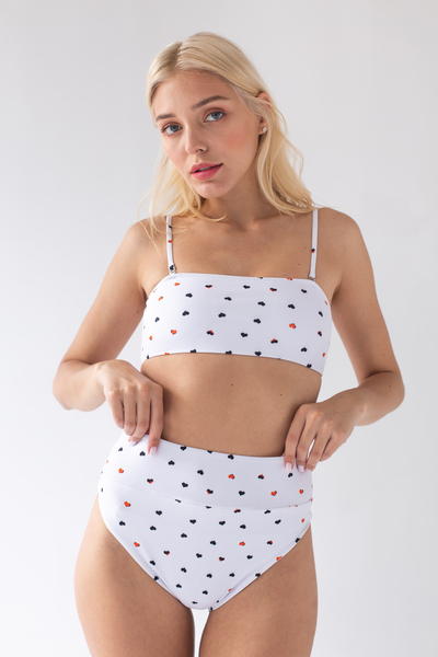 Роздільний купальник з високою талією. Верх у формі топа з регульованими шлейками і м'якими вкладишами. Плавки форми бразільяно. Однотонний дизайн у сердечка. Розмірна сітка допоможе обрати правильний розмір. Замовляй!