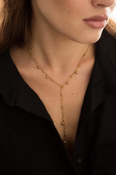 - Золотистий колір ланцюжка є стійким до стирання та зберігає свій блиск протягом тривалого часу.